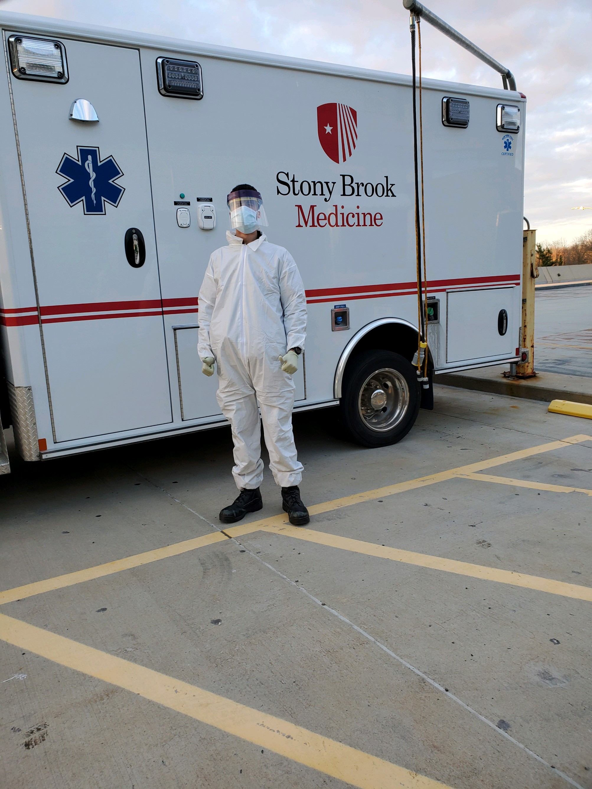 Pedro Casanova - West Babylon EMT for Brentwood Legion Ambulance "Our call volume has been higher then we have ever seen it before, but together as a dept. we have been able to help our community in these difficult times. I am very proud to be part of the Brentwood Legion Ambulance and am also in the process of becoming a volunteer fire fighter for West Babylon. Helping people is something I love to do and find great pride in doing. Thank you very much to all the first responders and essential workers risking there own health and safety to provide for everyone else."